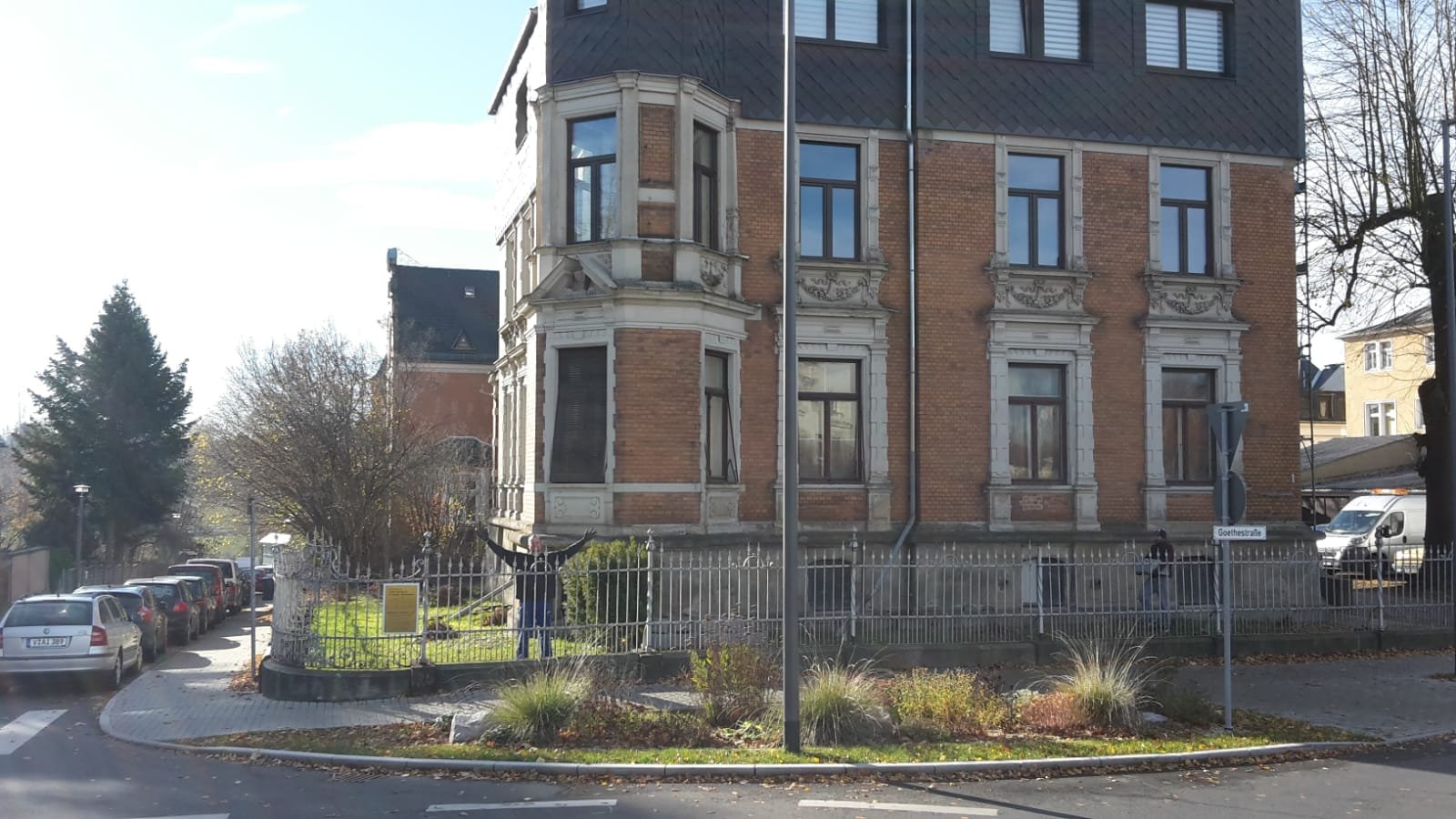Die Villa, in der sich die zum Verkauf stehende Wohnung befindet, liegt in zentraler und prominenter Lage eines alten Villenviertels im Herzen von Reichenbach im Vogtland