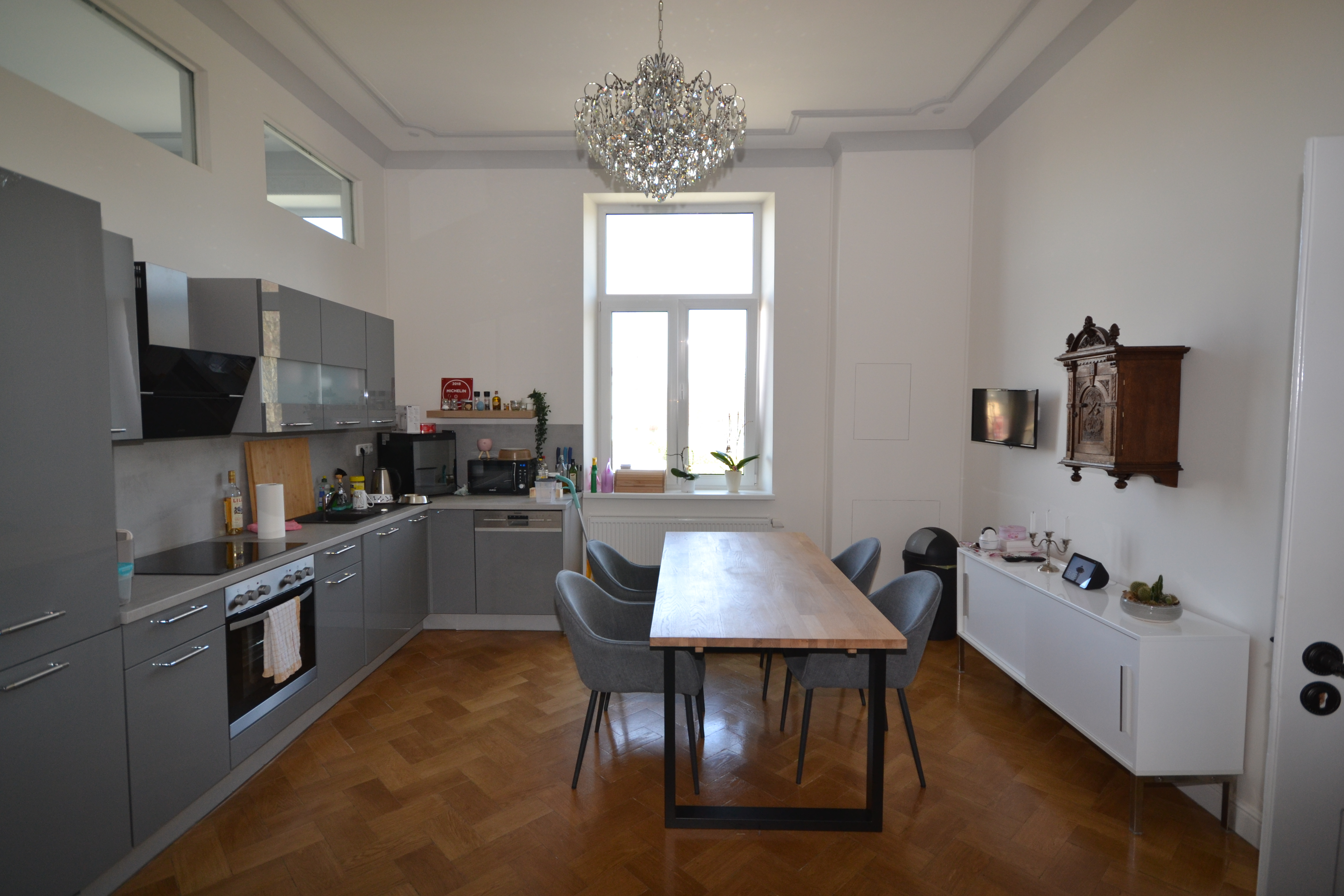 Diese großzügige Wohnung überzeugt mit einer festlichen Größe von 161,88 m² und wurde in den Jahren 2018–2020 komplett entkernt und umfassend saniert. Auch hier trifft stilvolle historische Substanz auf zeitgemäße Modernisierung – ideal für alle, die ein außergewöhnliches Zuhause mit Charme suchen.